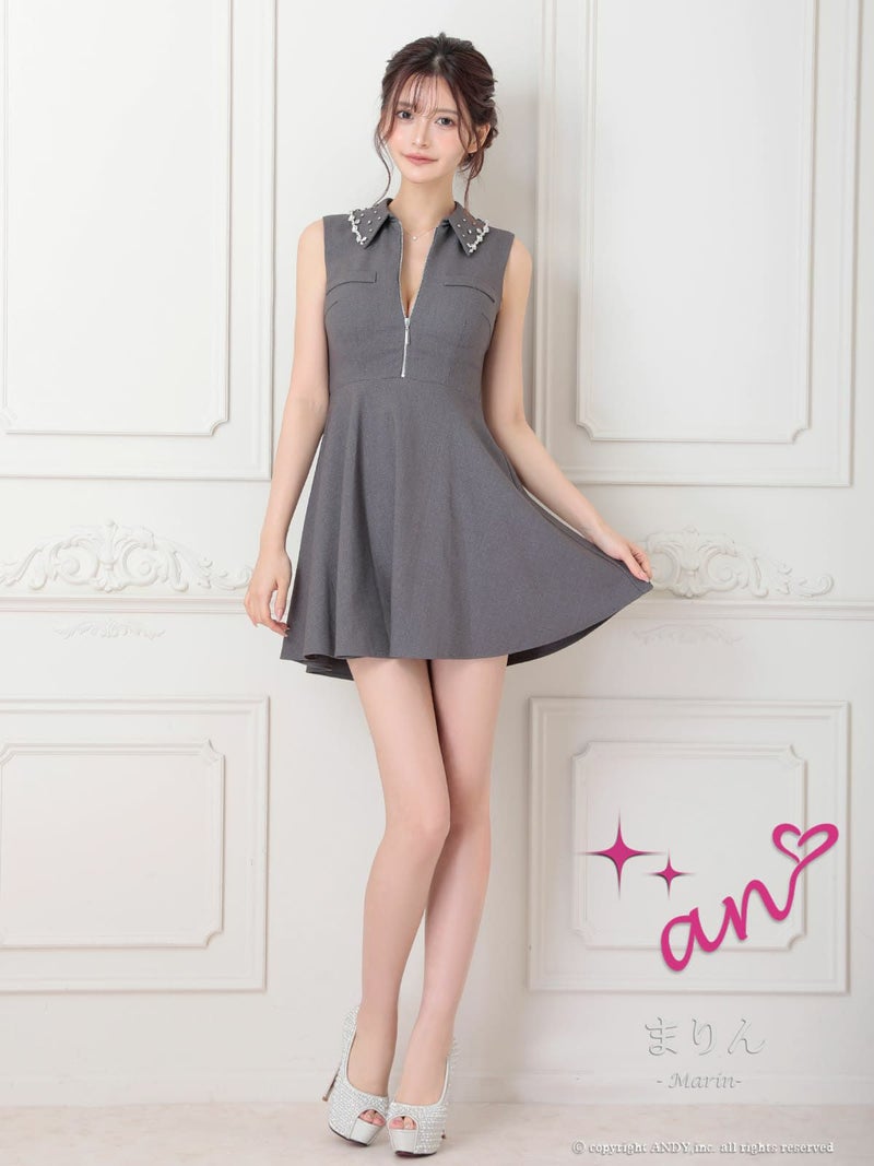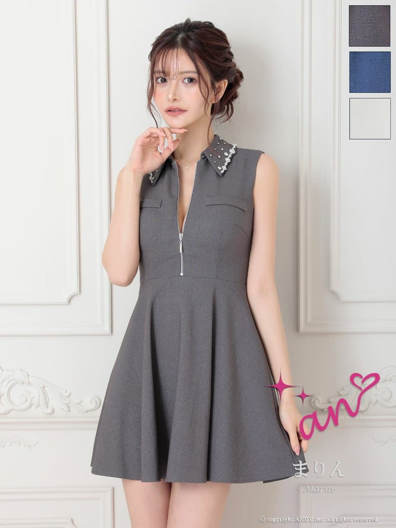 キャバドレス an アン 高級 Aライン ミニドレス 谷間 シンプル ノースリーブ 襟付き