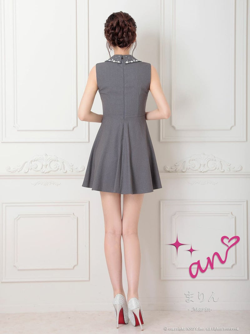 4. [an/アン] 高級 Aライン ミニドレス 谷間 シンプル ノースリーブ 襟付き