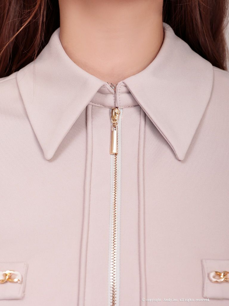 シンプルなワンカラーで大人sexyに☆ [AndyGLAMOROUS/アンディグラマラス] 高級 セットアップ ジップ 襟付き 長袖 袖あり シフォンスリーブ 2Way タイトミニドレス