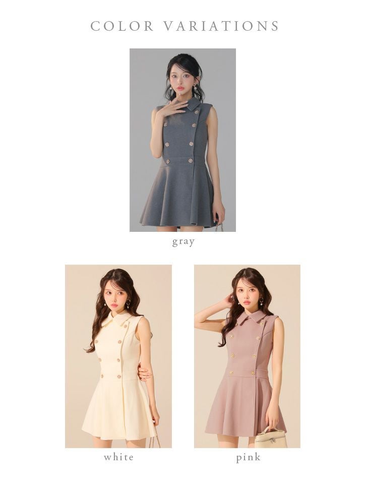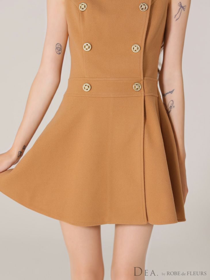 ダブルボタンでお洒落度アップ♡ [DEA.byROBEdeFLEURS/ディアバイローブドフルール] 高級 ワンカラー ダブルボタン 襟付き ノースリーブ フレアミニドレス