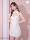4. SALE [ROBEdeFLEURS/ローブドフルール] 高級 襟付き デコルテシアー スパンコール ホルターネック タイトミニドレス