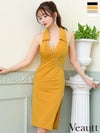 キャバドレス 膝丈ドレス Veautt/ヴュート  高級ノースリーブ襟デザインボタンサイドジップタイト膝丈ドレス