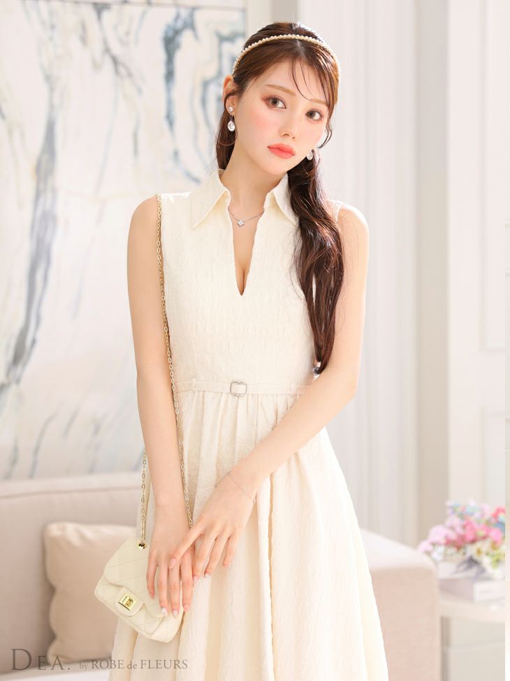 他の画像を見る 同伴にもおすすめ☆ [DEA.byROBEdeFLEURS/ディアバイローブドフルール] 高級 ワンカラー ダブルボタン 襟付き ノースリーブ フレアミニドレス ¥ 28,380 税込 お気に入りに追加