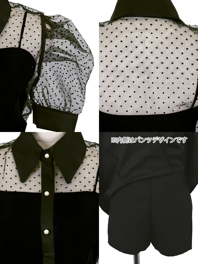 [韓国ドレス] 襟付き 半袖 ドット柄 シアーシャツセットアップ フレアミニドレス (Sサイズ/Mサイズ) (緩苺/キャバドレス着用) [TikaPimil]