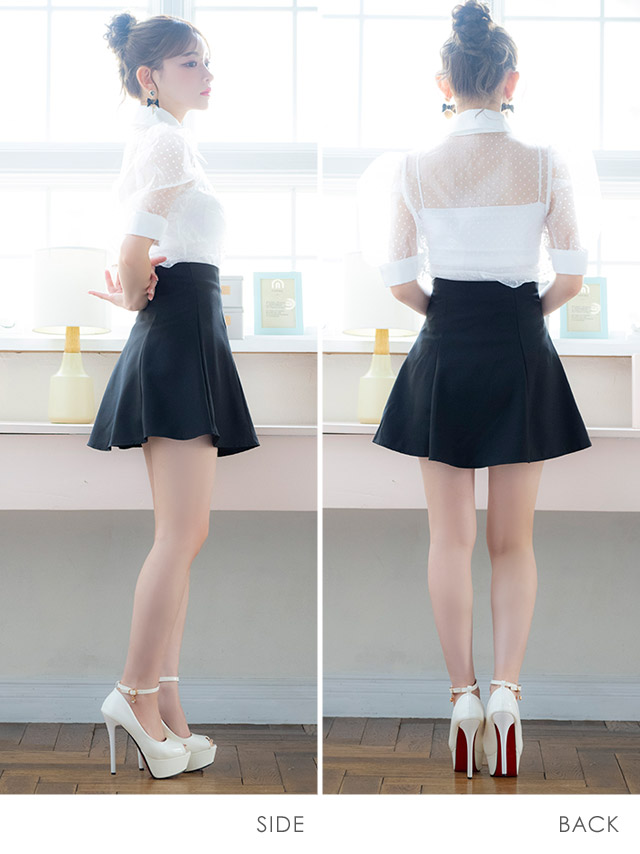 4. [韓国ドレス] ワンピース セットアップ 襟付き 半袖 ドット柄 シアーシャツ Aライン キャバドレス (黒崎みさ着用) [tk-mdsk150a]