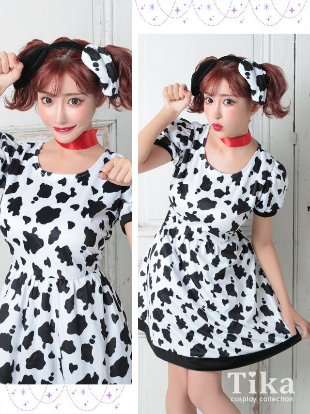 4. [コスプレ] ダルメシアン体型カバーフレアスカートガーリー犬アニマル [3点セット] (ワンピース/チョーカー/カチューシャ)