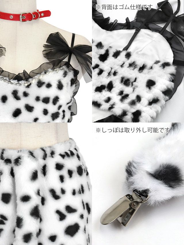 なりきり度&気分も上がる♡ [コスプレ] コスプレ ダルメシアン もこもこ ハート チュールリボン ビジュー へそ出し ガーリー アニマル 8点セット (トップス/スカート/カチューシャ/チョーカー/付け鼻/アームカバー/しっぽ/レッグカバー)