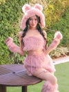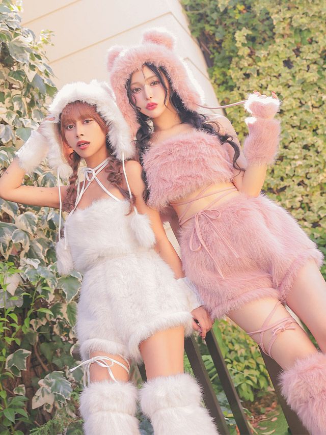 写真映え抜群なふわもこベア♡ [SUPER SALE] コスプレ コスプレ テディベア へそ出し セクシー ふわもこ ガーリー ツイン アニマル 2Way 袖あり 6点セット (レーストップス/ビスチェトップス/パンツ/帽子/リストバンド/レッグカバー)
