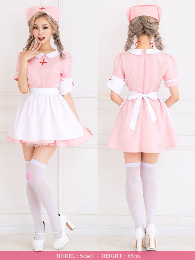 コスプレ メイド風デザイン体型カバーフレアスカートプチプラミニナース [6点セット]