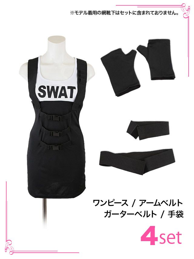 インパクト抜群な攻めポリス♪ SALE [コスプレ] メッシュ袖あり編み上げツインエロかわセクシーポリス [8点セット] (オールインワン/ベルト/帽子/グローブ/ニーハイストラップ/手錠/ニーハイベルト/ニーハイ)