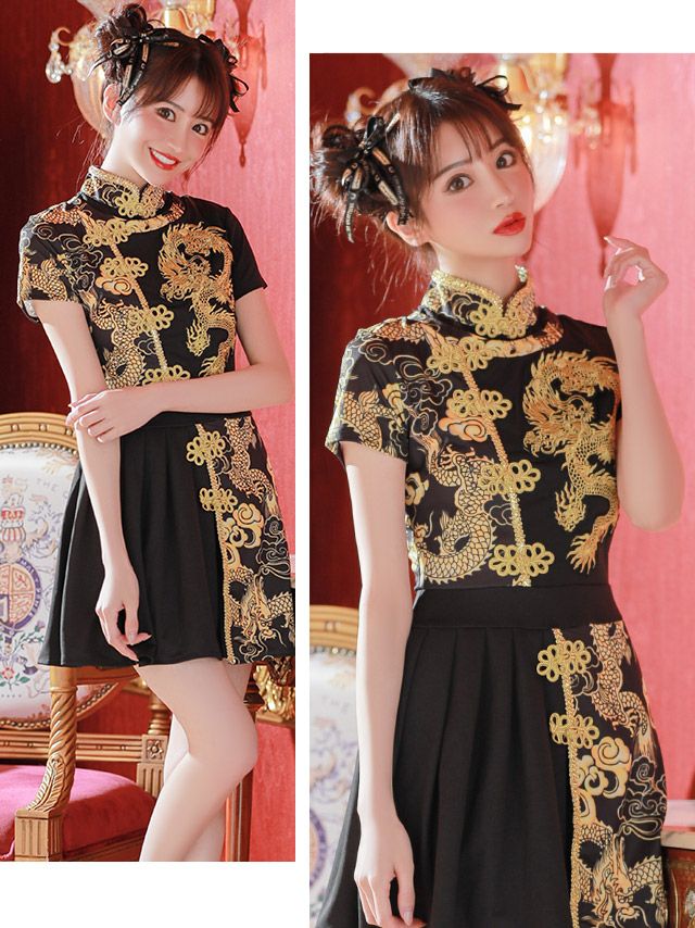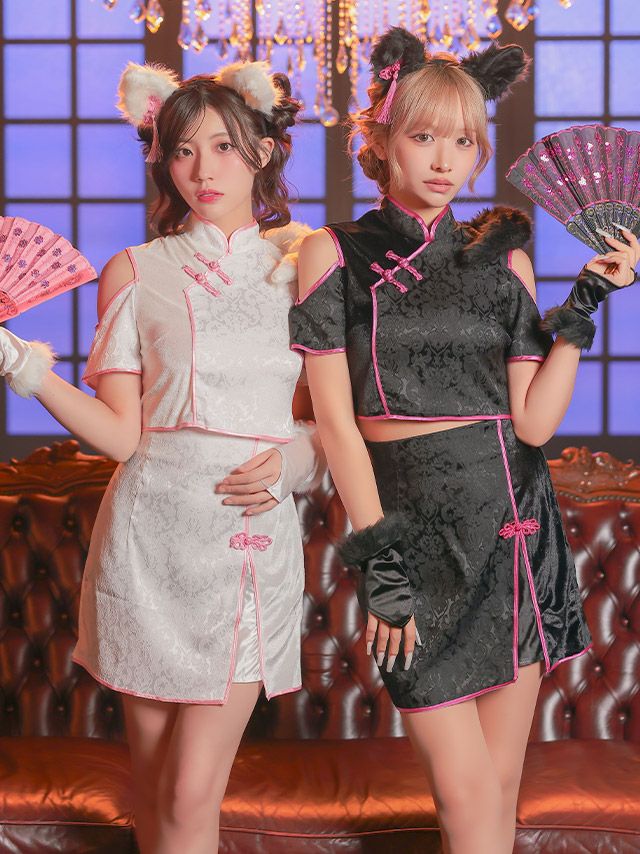 段のあるスカートで甘々可愛い♪ SALE [コスプレ] ワンカラーフリルフレアスカートガーリーツインチャイナ服 [2点セット] (トップス/スカート)