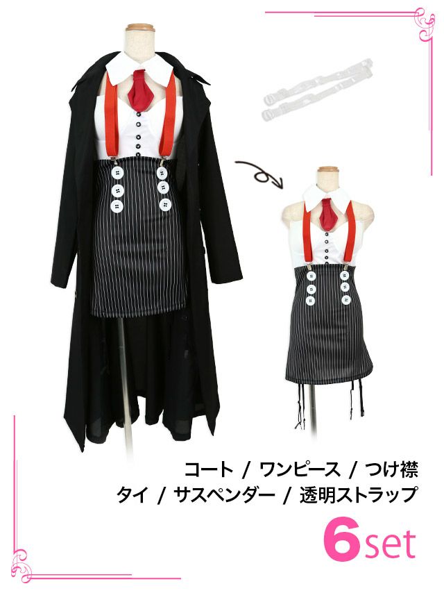 5. [コスプレ] ギャング袖ありツインマフィアポリス [6点セット] (コート/ワンピース/つけ襟/タイ/サスペンダー/透明ストラップ)