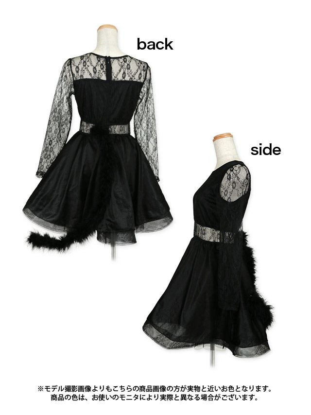 4. [コスプレ] 黒猫袖あり体型カバーフレアスカートガーリーアニマル [2点セット] (ワンピース/カチューシャ)