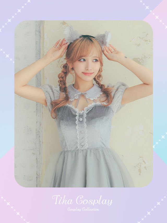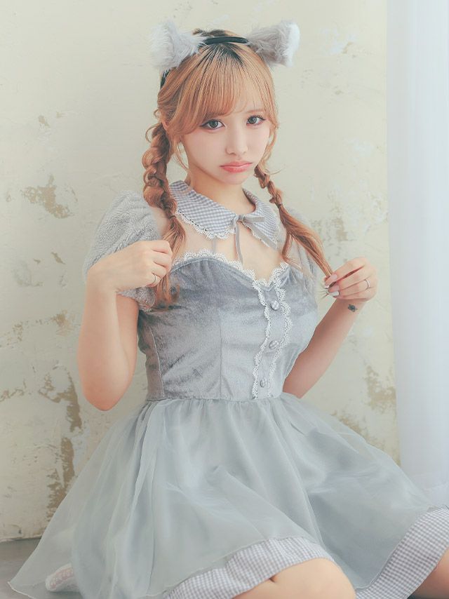 5. [コスプレ] ベロア体型カバーボリュームシフォンフレアスカートウルフガーリーアニマル [3点セット] (カチューシャ/ワンピース/しっぽ)