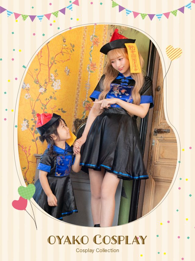 3. [SALE] コスプレ 親子でお揃い サテンキョンシー[3点セット] (ワンピース/帽子/お札)