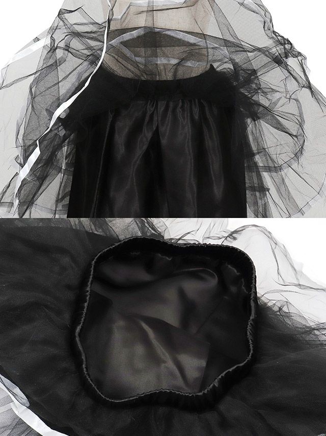重ね合わさったチュールとテープデザインで