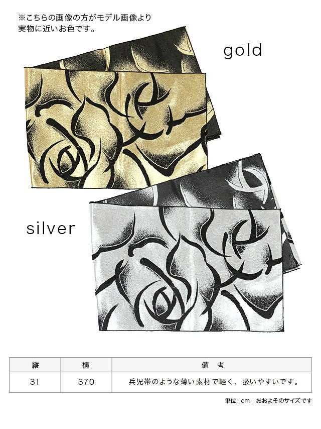 5. [浴衣小物] ゴージャス薔薇柄兵児帯単品 (ゴールド/シルバー)