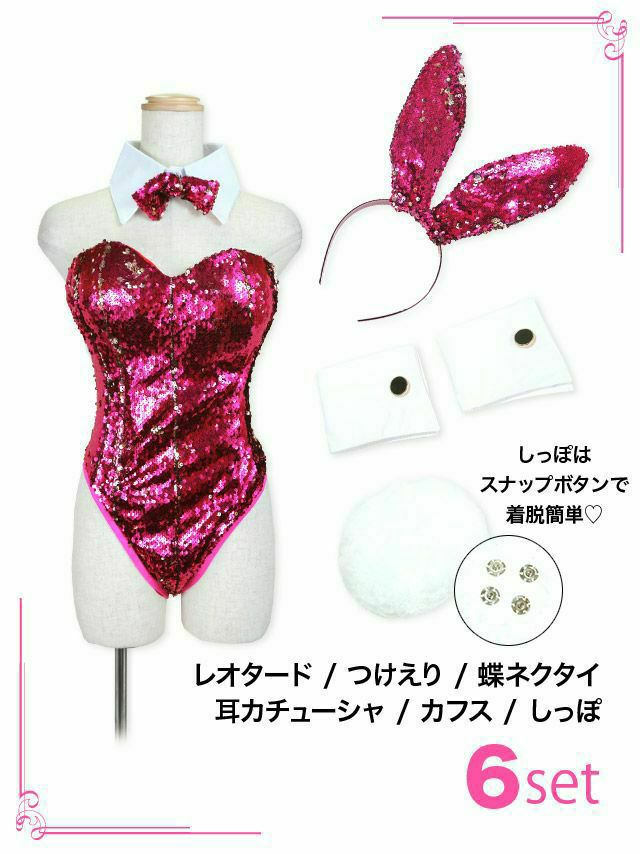 ラグジュアリーでリッチなsexyバニー♪ [コスプレ] ツイードラメフリルセクシールージュバニー [6点セット] (カチューシャ/レオタード/グローブ/しっぽ/ガーターリング/透明ストラップ)
