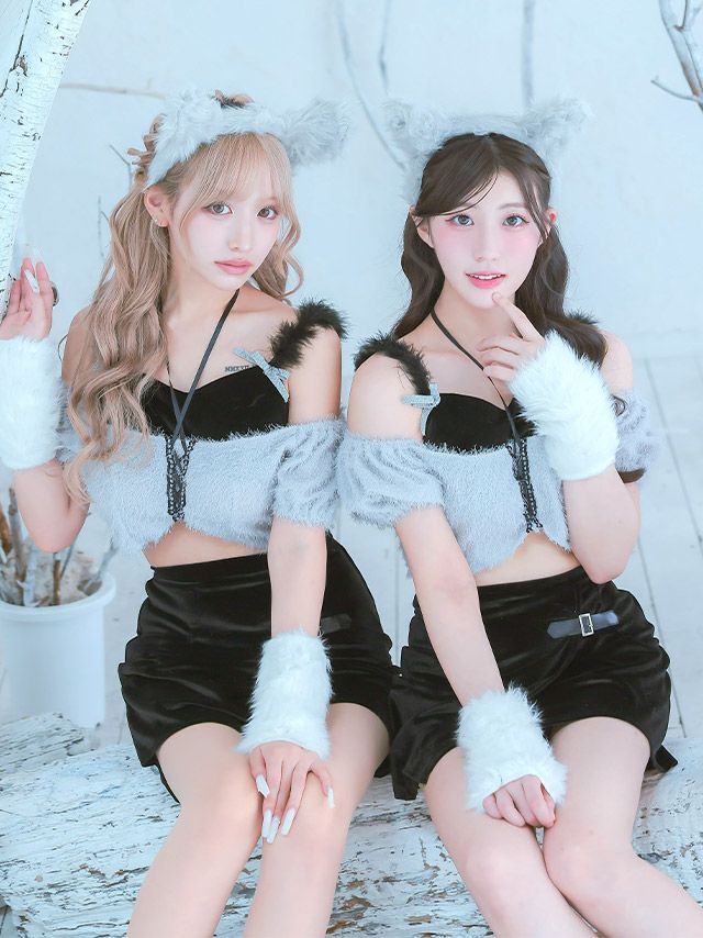 コスプレ ウルフ ふわもこ へそ出し ベロア ガーリー ツイン アニマル 6点セットの詳細アップ