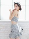 ハロウィンコスプレ ミックスツイードリボンバストファスナーへそ出しフレアスカートロリータ風猫アニマルのイメージ画像1