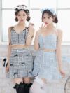 ハロウィンコスプレ ミックスツイードリボンバストファスナーへそ出しフレアスカートロリータ風猫アニマルのイメージ画像3
