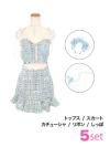 5. [コスプレ] ミックスツイードドレスリボンバストファスナーへそ出しロリータ黒猫アニマル [5点セット] (トップス/スカート/カチューシャ/リボン/尻尾)