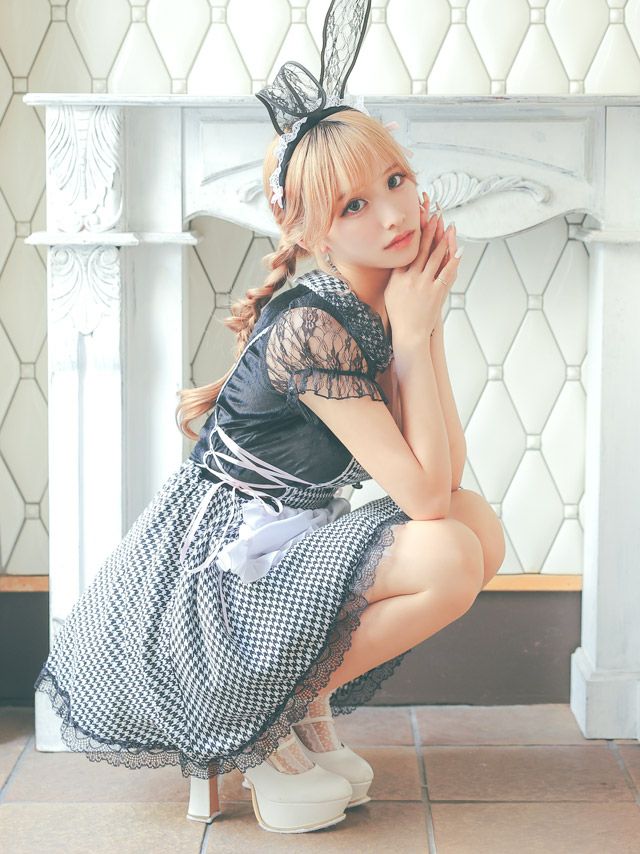 ハロウィンコスプレ ガーリー千鳥柄フレアスカート体型カバーメイドバニーのイメージ画像1