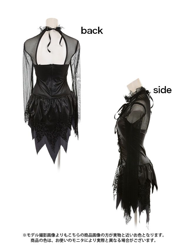 4. [コスプレ] ダークブラックツイン袖あり体型カバーホラーエンジェル [3点セット] (ワンピース/カチューシャ/羽)