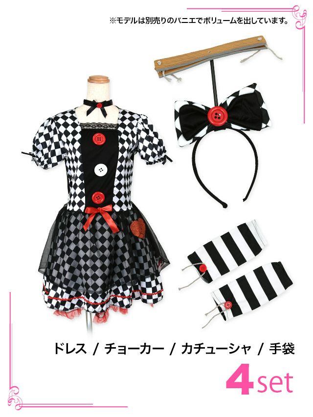 4. [コスプレ] マリオネットドール体型カバーフレアスカート個性ツインホラー [4点セット] (ドレス/チョーカー/カチューシャ/手袋)