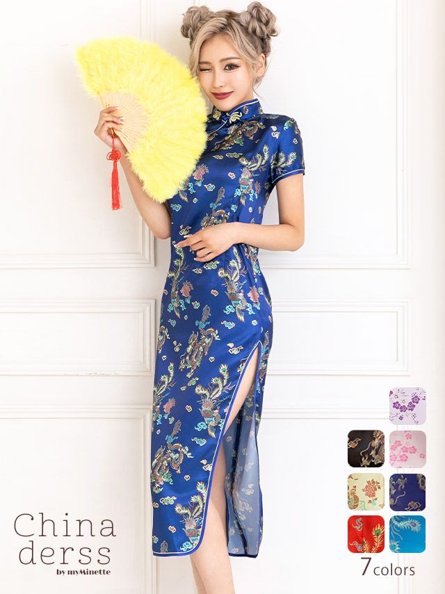 5. [コスプレ] 刺繍デザインサイドタイトロング丈プチプラチャイナ服 [1点セット] (チャイナ服)