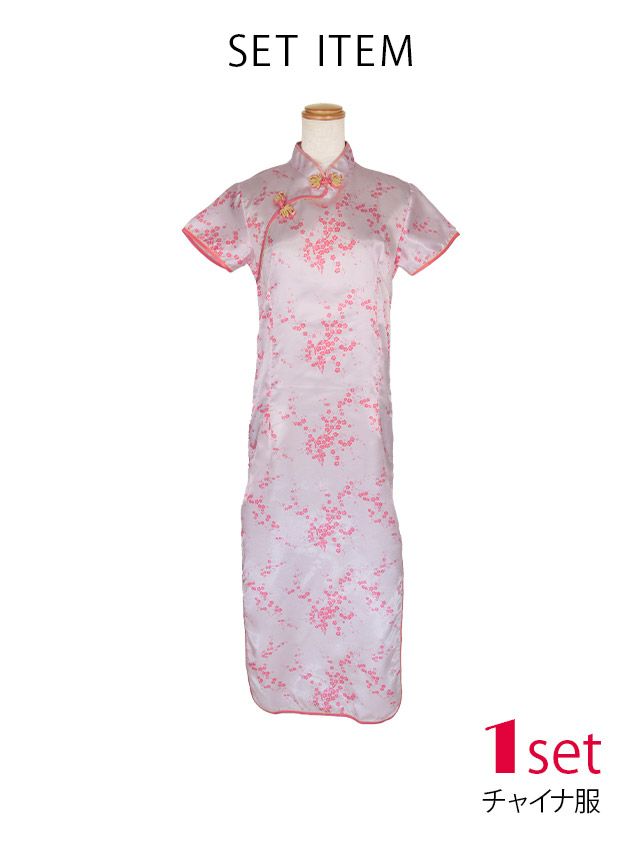 コスプレ 刺繍デザインサイドスリットタイトロング丈プチプラチャイナドレス [1点セット]