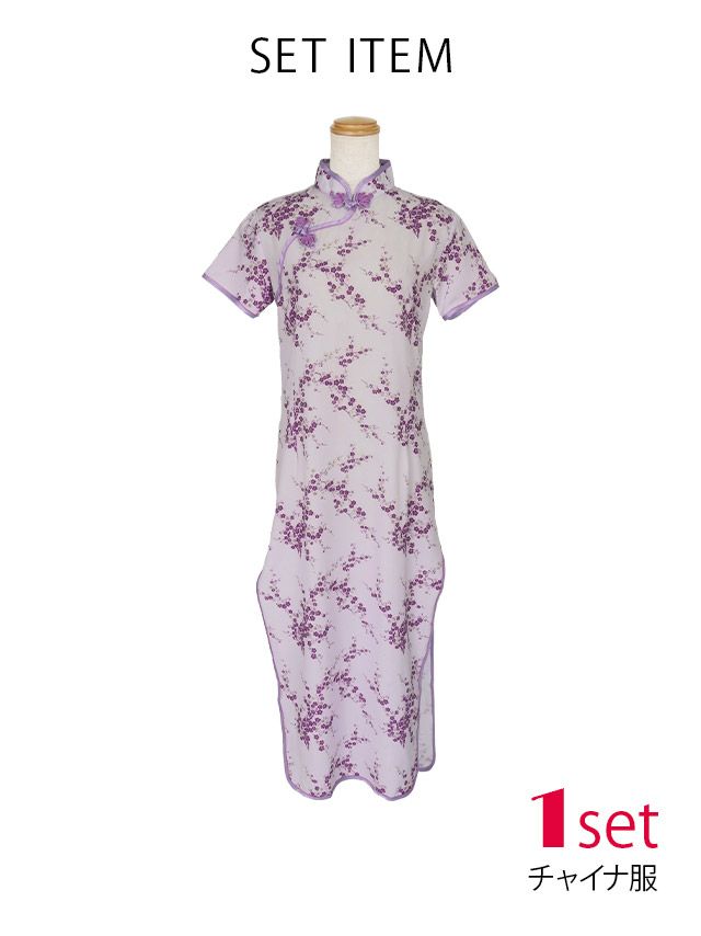 4. [コスプレ] 刺繍デザインサイドタイトロング丈プチプラチャイナ服 [1点セット] (チャイナ服)