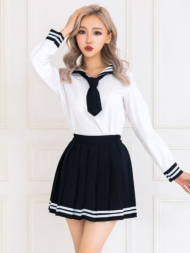 5. [コスプレ] 袖あり体型カバーフレアスカートプチプラミニセーラー服 [3点セット] (トップス/スカート/ネクタイ)