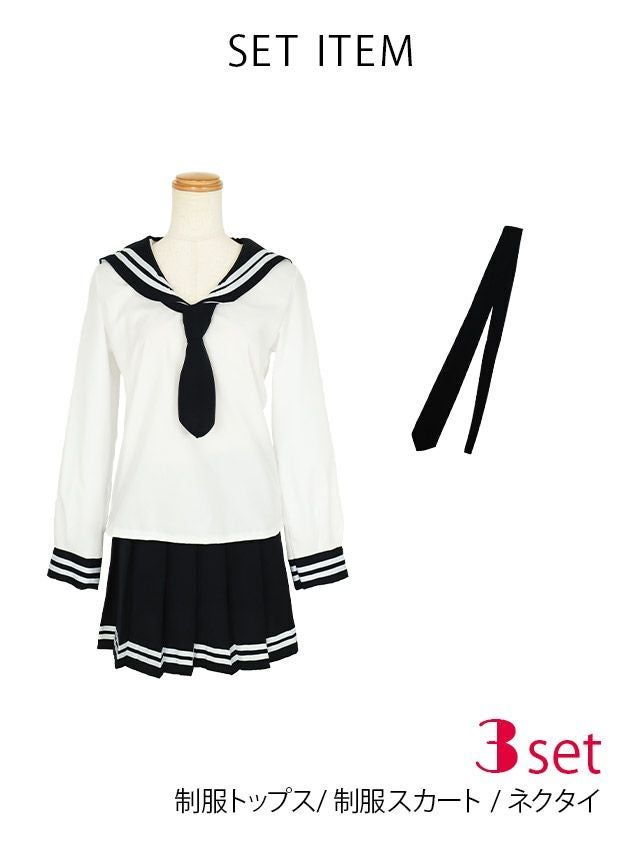 3. [コスプレ] 袖あり体型カバーフレアスカートプチプラミニセーラー服 [3点セット] (トップス/スカート/ネクタイ)