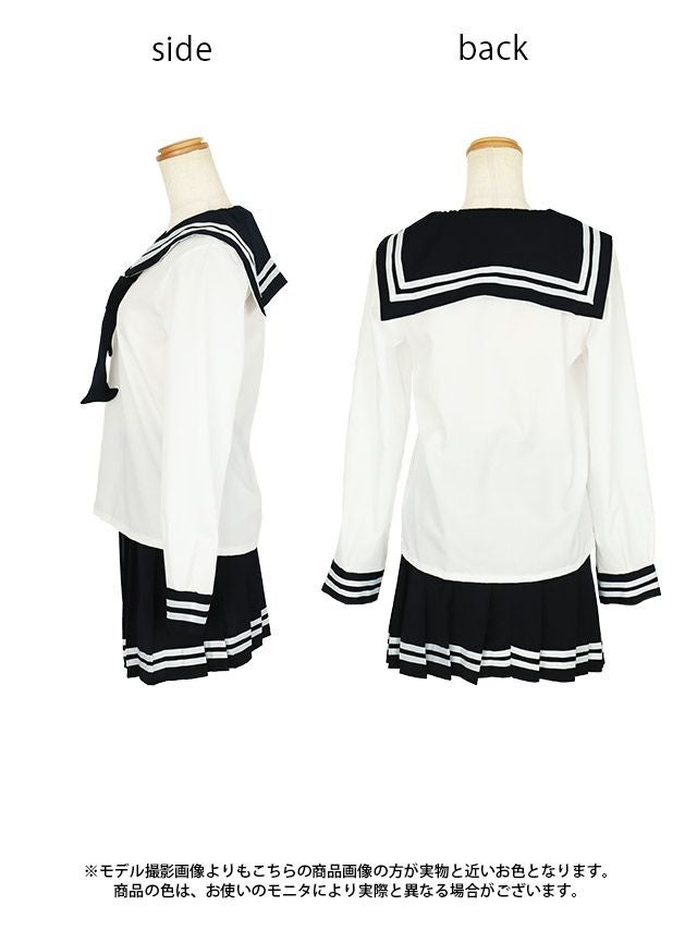 王道セーラー服コスプレ♪ [コスプレ] 袖あり体型カバーフレアスカートプチプラミニセーラー服 [3点セット] (トップス/スカート/ネクタイ)