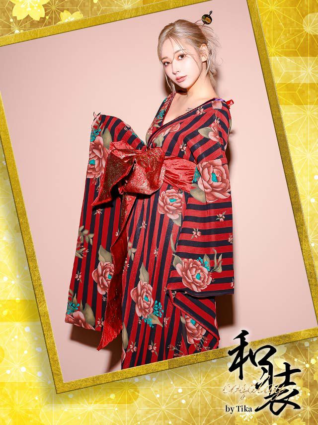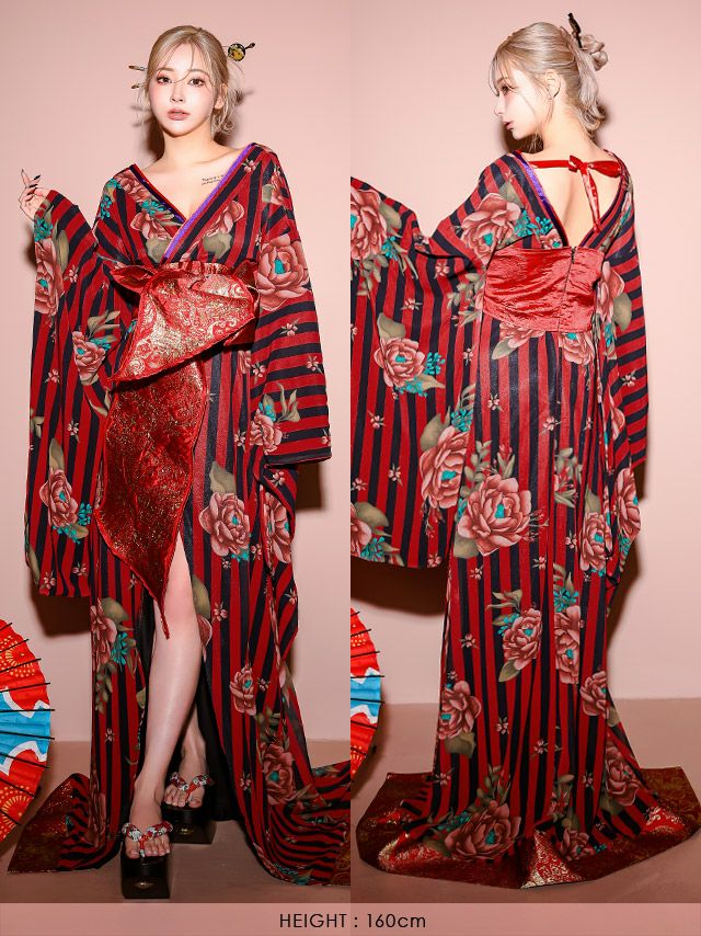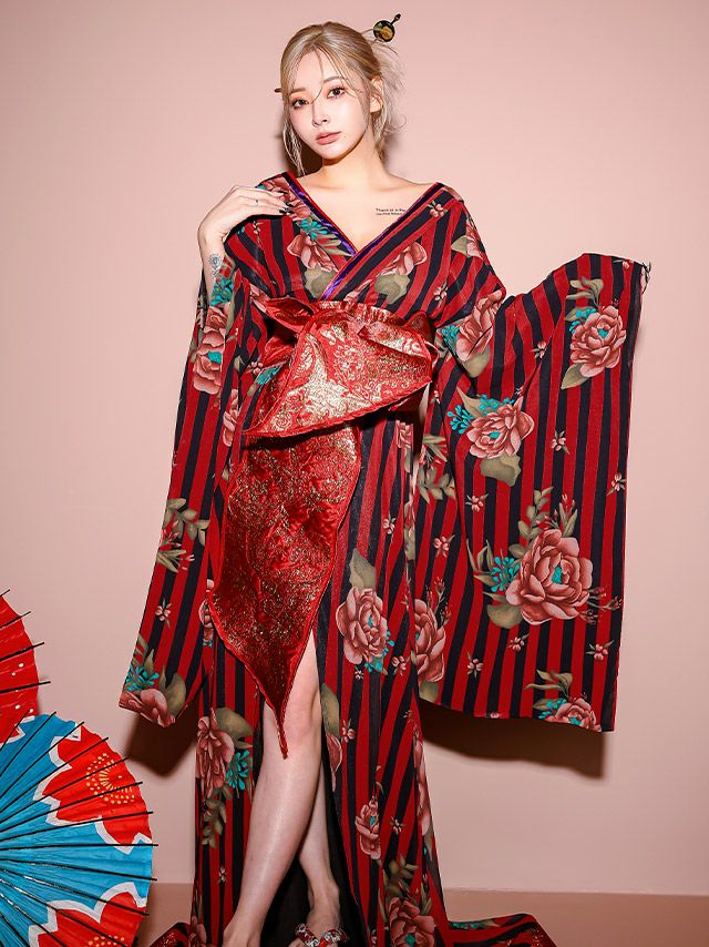 4. [コスプレ] 花魁 桜まつり ストライプフラワー和装ドレス [1点] (着物ドレス)