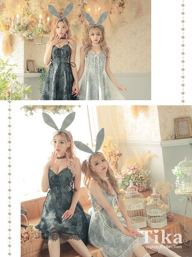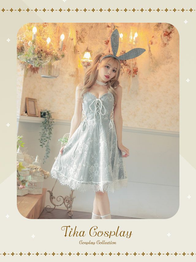 コスプレ ハロウィン うさぎ 衣装 仮装 編み上げグレンチェック×フラワーレース体型カバークラシックバニー