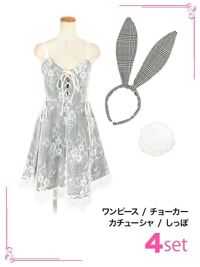 ハロウィンコスプレ 編み上げグレンチェック×フラワーレース体型カバークラシックバニーのセット内容