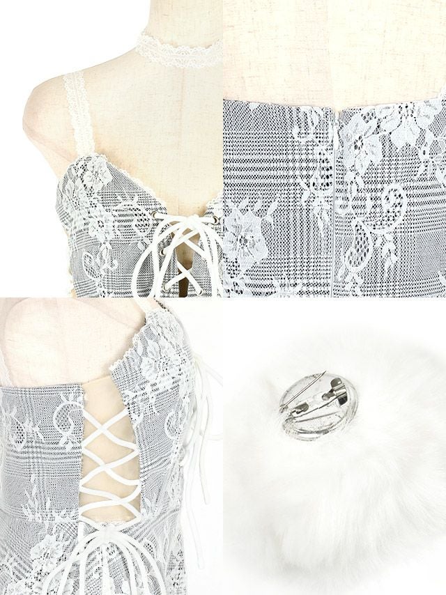 ハロウィンコスプレ 編み上げグレンチェック×フラワーレース体型カバークラシックバニーの詳細アップ