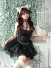 新作★写真映えするお顔周りを作る♡ [コスプレ] 猫 コスプレ ビジュー ラメ ガーリー ボリュームフレアスカート ロリーター ペア アニマル 3点セット (ワンピース/猫耳/ヘッドドレス)