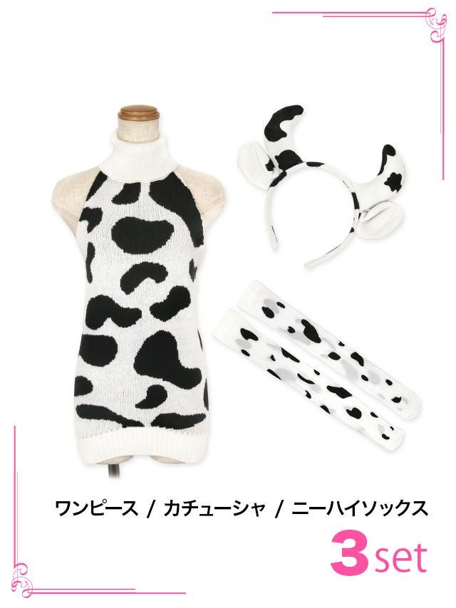 ワンピと同じ牛柄のニーハイソックスで