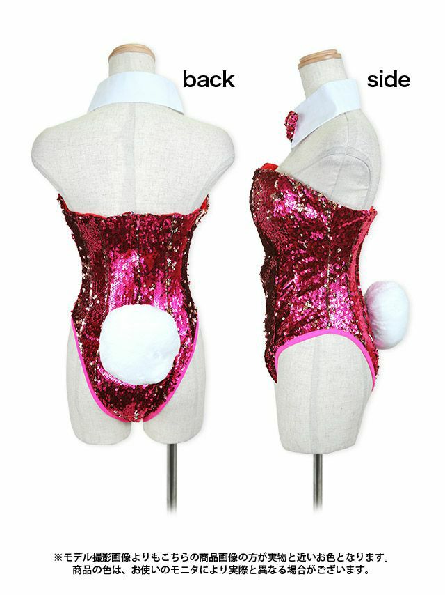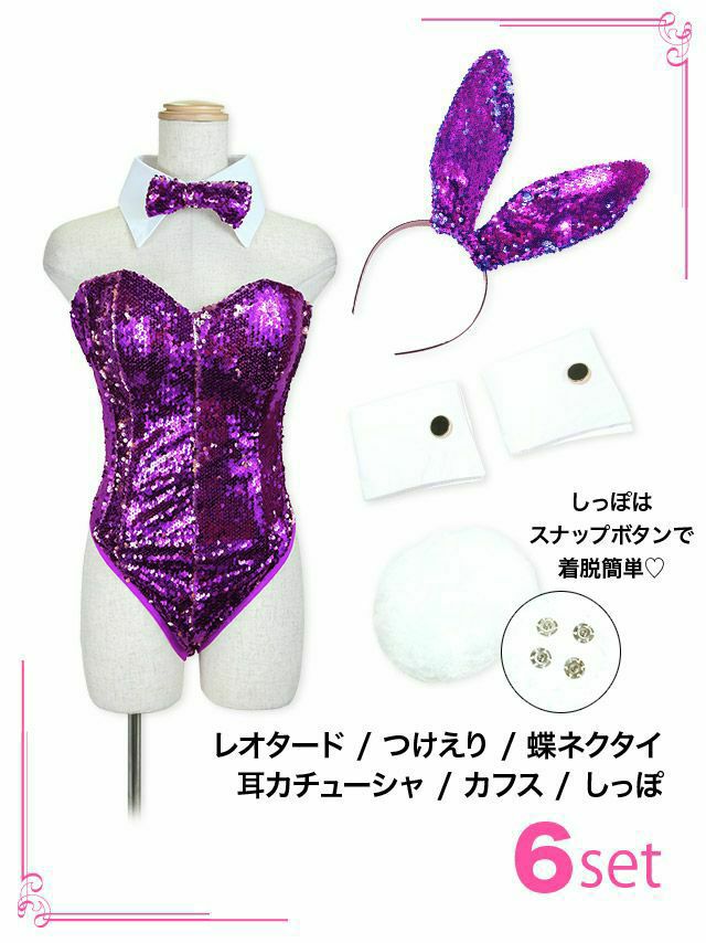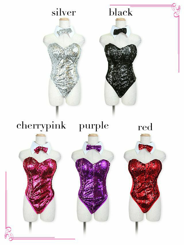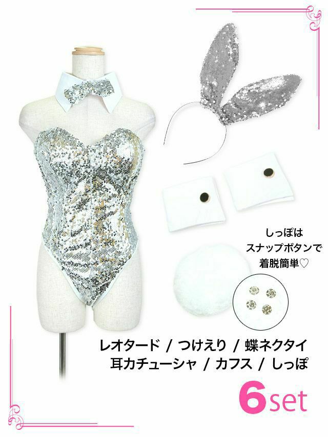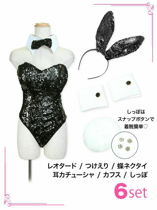 5. [コスプレ] スパンコールハイレグセクシーエロかわバニーガール [6点セット] (レオタード/つけえり/蝶ネクタイ/耳カチューシャ/カフス/しっぽ)