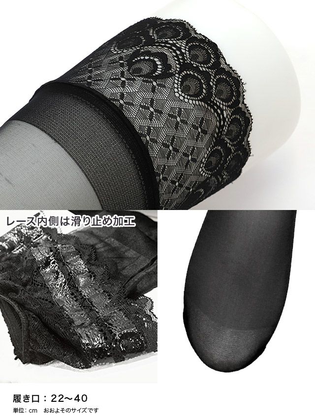 レースストッパー付きブラックシアーニーハイソックスのサイズ表