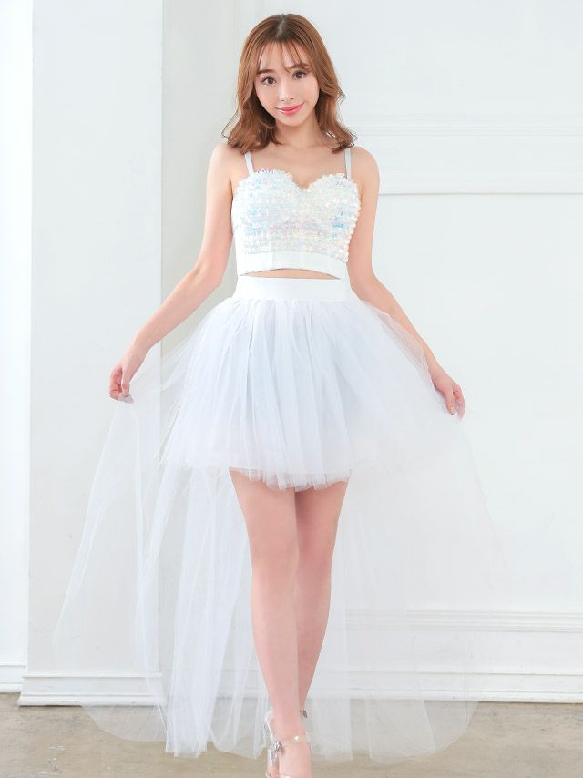 ボリューム感たっぷりなミニ丈のチュールスカートに