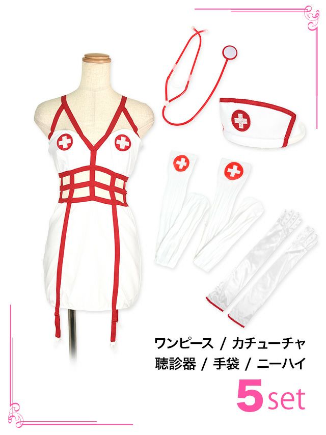 セクシーカッティングバイカラーナース ハロウィンコスプレ5点セットのセット内容