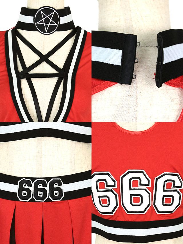 ポンポン付きセクシースター映えアメリカンチアガール ハロウィンコスプレ4点セットの詳細アップ