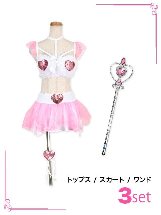 3. [コスプレ] ラブリーセクシー個性ツインガーリーへそ出しフレアスカートエンジェル [3点セット] (トップス/スカート/ワンド)