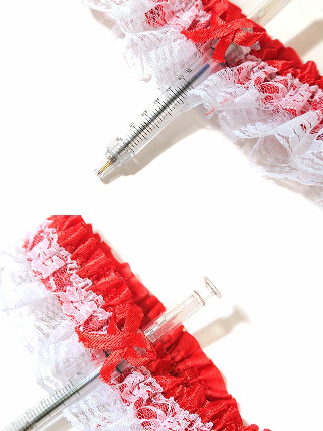 注射器型のボールペンはガーターリングの