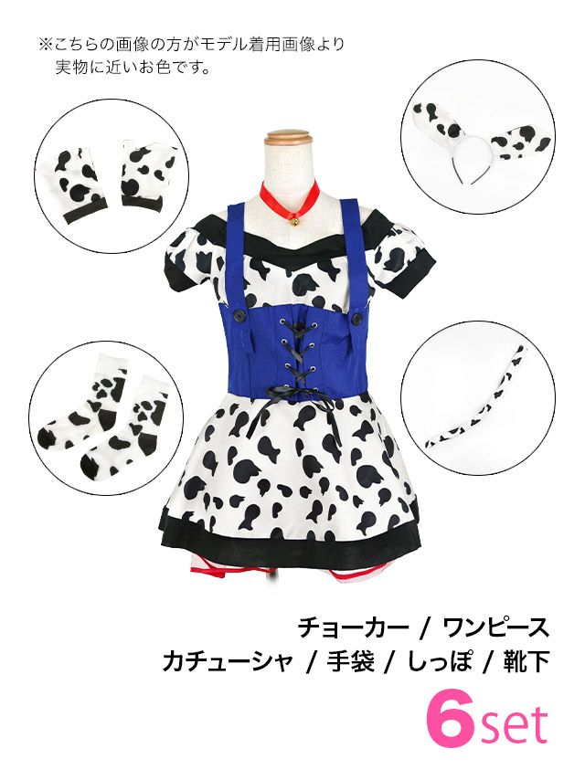 コスプレ ダルメシアン サスペンダー フレアスカート 体型カバー ガーリー ツイン アニマル 6点セットのセット内容