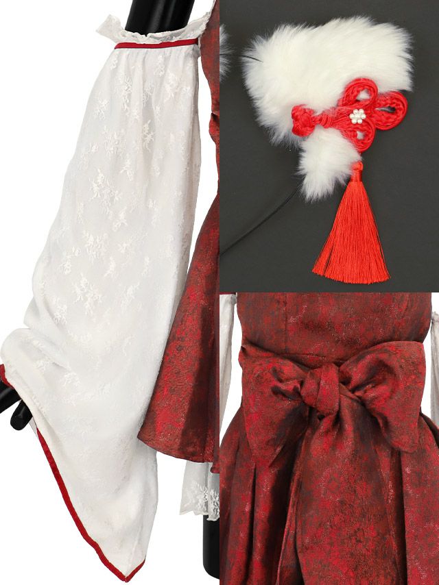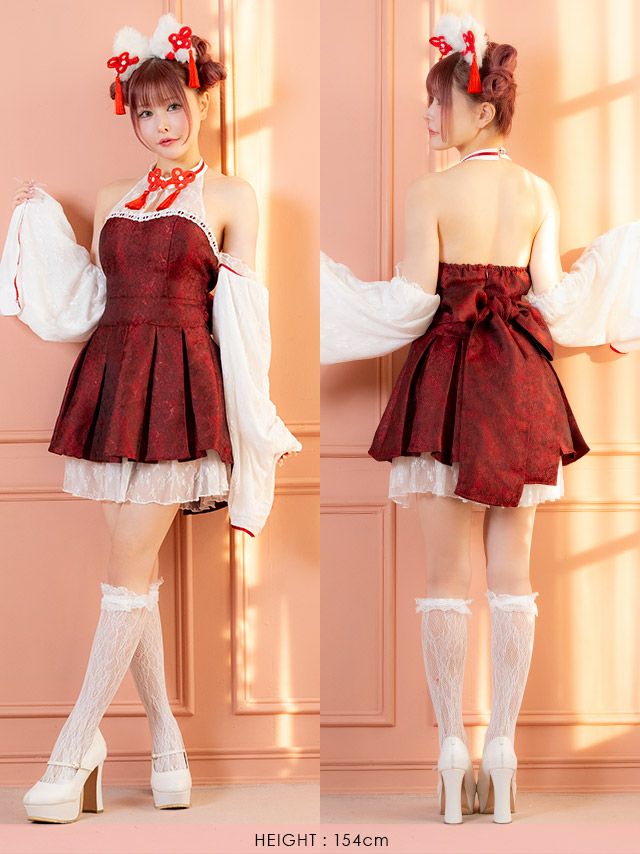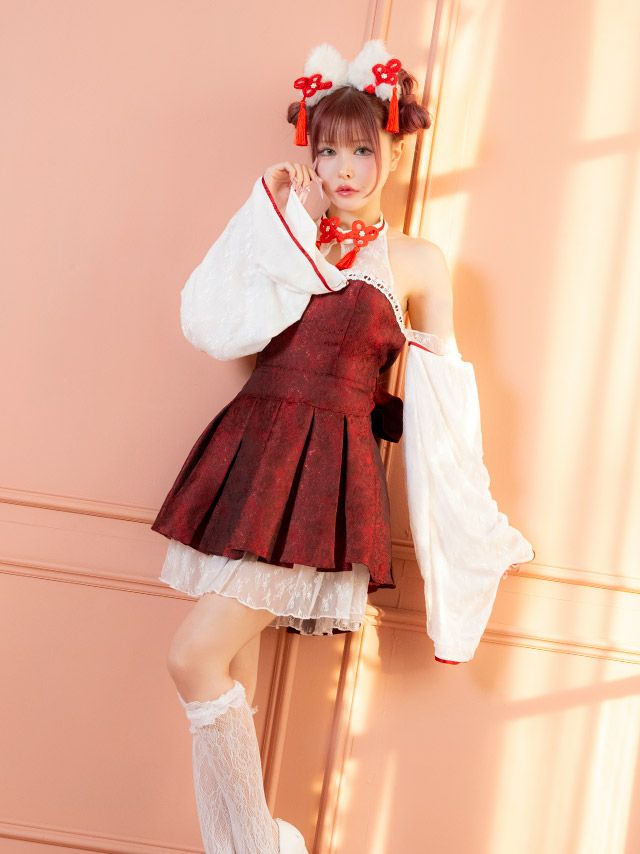 [SUPER SALE] コスプレ 猫 コスプレ 巫女 和装 ボックスミニ丈プリーツ フレアスカート アニマル 2点セット (ワンピース/カチューシャ)